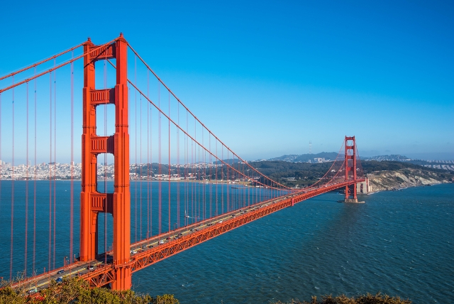 2. Take a scenic stroll across the Golden Gate Bridge. Experience the passage across the famous bridge at your own pace and without the hefty toll. Enjoy almost two miles each way of breathtaking scenery and view San Francisco's skyline while you get your fitness on. The south end of the bridge features perennial gardens, an information and souvenir center, and the Bridge Café which features healthy and local food offerings. Bring a jacket, take pictures, observe, and enjoy the windy atmosphere of the city.