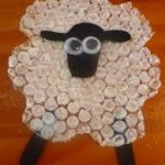 - When the white paint is completely dry, Glue the sheep face cutout onto the center of the bubble wrap. Glue the legs on as well.