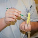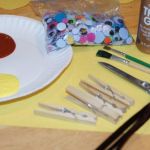 - Thoroughly paint the 3 clothespins with yellow paint and allow to dry.