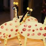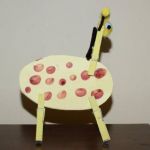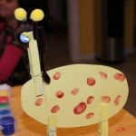 - Assemble your giraffe by clipping the two clothespin legs to the bottom of the oval while holding the oval on its side. You will actually be able to stand it up.