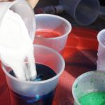 - Put some food coloring in each cup of vinegar. I recommend using non natural food coloring for more vibrant results
