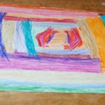 - When the page is full of vibrant heavily waxed color, color over the entire drawing with a thick and heavy completely black crayon overlay.