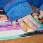 Crayon Scratch Art was one of my go to art projects when I was a child. I remember how much time that I took to diligently perform the processes just so that I could marvel at the end result each time. I decided to try this one out with my own children and it was a big success. When the technique is complete, you can etch patterns, designs, writing, or drawings.
