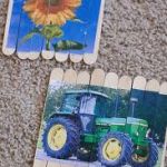 3. Trim the picture to fit the craft stick and deal the picture to the center of the sticks with Modge Podge.