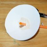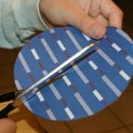 - Cut the circle out with your scissors and cut one slice half way through the circle.