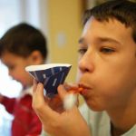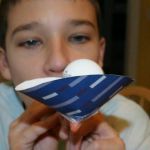 The object of the activity, once it is created, is to blow steadily into the straw and keep the ball afloat in the air above the funneled paper without dropping it. This project took a little troubleshooting for it to work at its best for each of them.