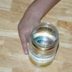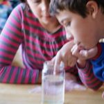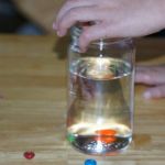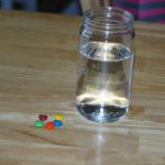 - Carefully drop several M&Ms into the water.