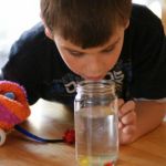 The experiment of the Floating Ms examines solubility. Scientists of all ages in your family will find intrigue in this simple science experiment that uses candies that we often pop into our mouths without giving them much thought. You see, some of the M&M candy is soluble in water and some is not. In this case, the colorful dyes are soluble in water but the translucent candy shell is not. A fun one for kids of all ages - this experiment proves why M&Ms truly do "melt in your mouth and not in your hand."