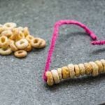 - Once you have your shape made, bend one end of the wire into a loop and simply string cheerios onto the wire until the wire is just about filled up. Be sure to leave at least and inch on each end to bend the wire over or twist with the other end in the case of the circle.