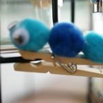 3. Stick each pom pom one after another along the length of the clothespin.