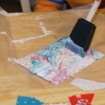 - Using your foam brush, apply a thin layer of Mod Podge starting in one corner and moving across the colored side of the cardboard.