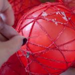 - Wrap the Mod Podge saturated around the balloon over and over varying the direction and being sure to criss cross with other pieces of yarn. Do not cover the balloon completely, but well enough that it looks like a web of yarn encasing the balloon.
