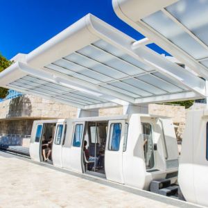 A computer-operated tram takes you from the street-level entrance to the top of the hill. The tram is fully accessible. From the parking structure, take the elevators up to the Lower Tram Station (T1).
